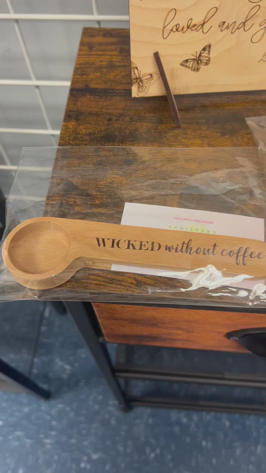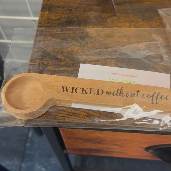 Wooden coffee scoop/bag clip. Can be personalized with a saying shown or something of your choosing.
